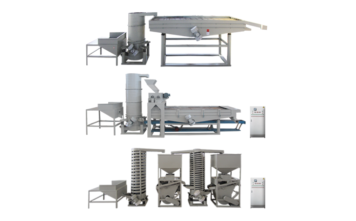 脫殼分選單元:上料斗、螺旋提升機、脫殼分選主機、回料板簧篩。