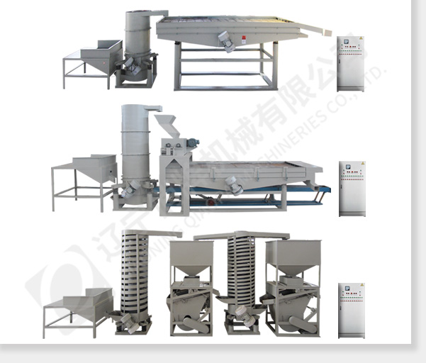 除殼單元:上料斗、螺旋提升機、雙通道螺旋提升機、殼仁分選機(2臺)。該單元可將仁與殼分選開。