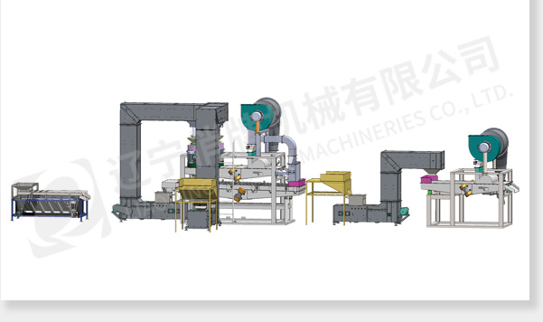 脫殼分選單元:上料斗、Z型斗式提升機(jī)、脫殼機(jī)(一次脫殼)、分選篩、C型斗式提升機(jī)(提升未脫開(kāi)原料至二次脫殼機(jī))、脫殼機(jī)(二次脫殼)。